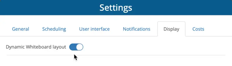 In Plan Settings > Display, you can now enable Dynamic Whiteboard Layout. With this on, the Whiteboard automatically rearranges itself every time you make a change on the Whiteboard, including when you expand or collapse a group. This ensures the Whiteboard space is used efficiently and your project plan remains as easy as possible to follow.