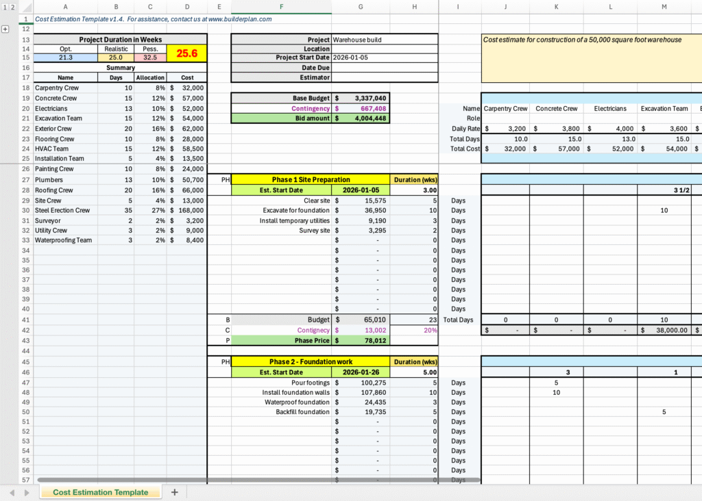 This creates a seamless workflow from estimation to schedule, all starting from a familiar Excel template.