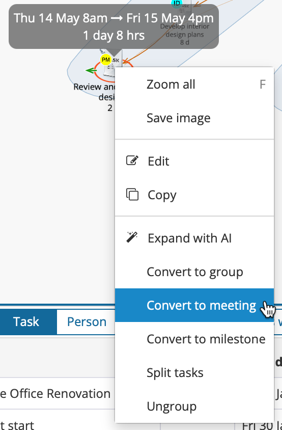 GamePlan now allows Tasks and Meetings to be converted between each other, making it easier to correct or refine a schedule.